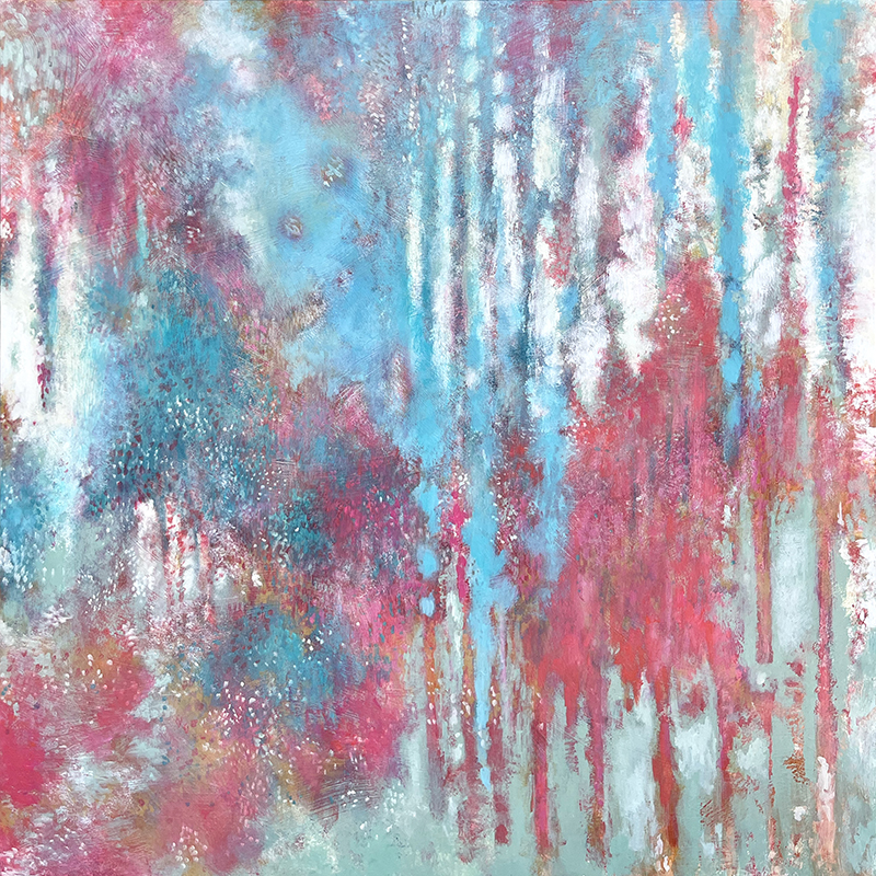 BEXO paintings are collaborations between sisters Rexo Droppers and Betni Kalk. Betni is a designer, painter, muralist and graphic design professor. Rexo is a musician, photographer and painter.Their first step is to create textured backgrounds with lots of drips and sprays to activate the acrylic. They tend to work on 2-4 paintings at once, going back and forth between them as they discuss next steps for the pieces. At times they add imagery, sometimes they feel the paintings are finished as purely abstract.